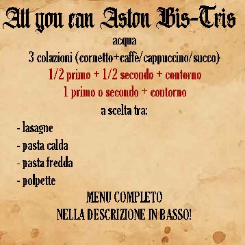 *Menu completo nella descrizione in basso.